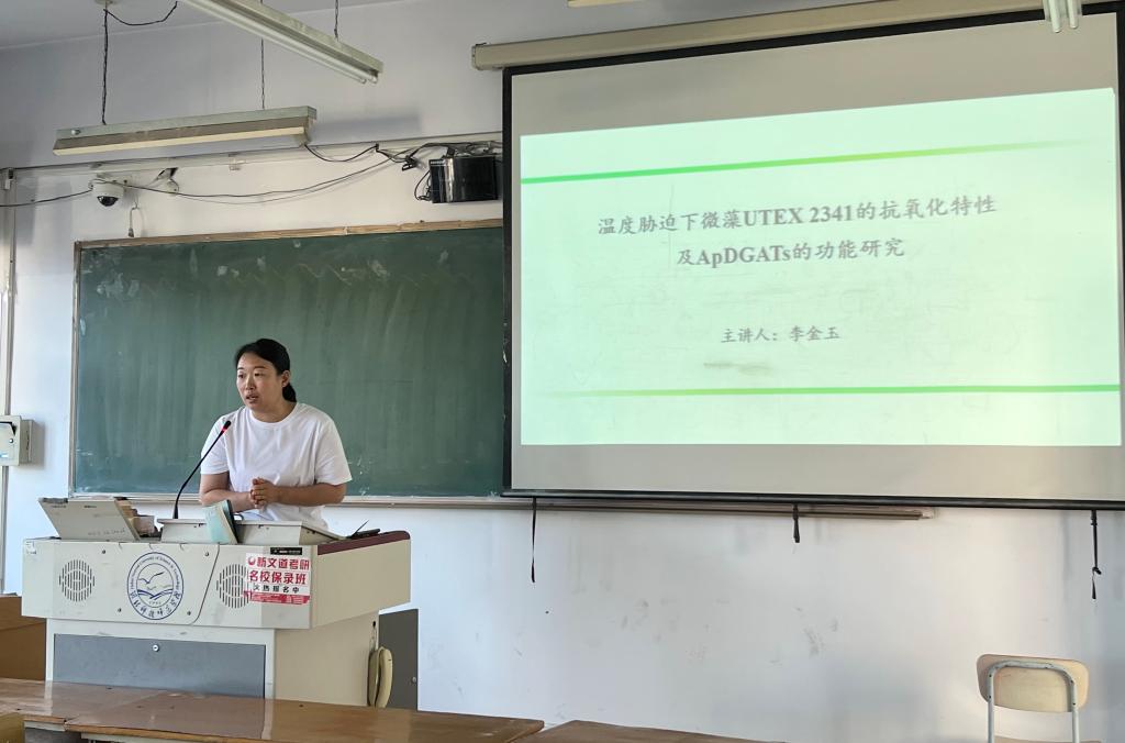 薛力园博士毕业于中国地质大学(北京),报告的题目为“南海北部陆丰凹陷中新世古环境演化研究”,报告认为研究区中新世古环境演化受到全球气候变化和区域构造活动的共同影响,并详细介绍了研究区在早中新世至中中新世早期(~18.7–14.24Ma)、中中新世中–晚期(14.24–11.54Ma)和晚中新世至上新世期间(11.54–4.53Ma)的不同营养程度的中–外陆架环境。李金玉博士毕业于中国农业大学,报告的题目为“温度胁迫下微藻UTEX 2341的抗氧化特性及ApDGATs的功能研究”,主要介绍了微藻的研究现状及不同环境因子对微藻油脂的影响,揭示了微藻UTEX2341对不同环境因子的耐受能力及微藻UTEX2341对温度胁迫的抗氧化应答机制和TAG合成机制。