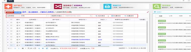 拥有审核管理权限的管理员可在首页待审任务看到系统中自己管辖范围内提交的待审数据,可以选择业务类型或根据申请人名称、申请单据号快速找到相应的数据,点击数据操作,即可看到当前数据的审核情况、资产详情信息等,对多条数据可以进行批量操作