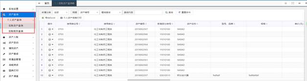 可以查询到未审核变动设备信息,具体操作与【在账资产】查询基本一致。